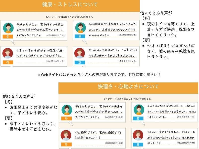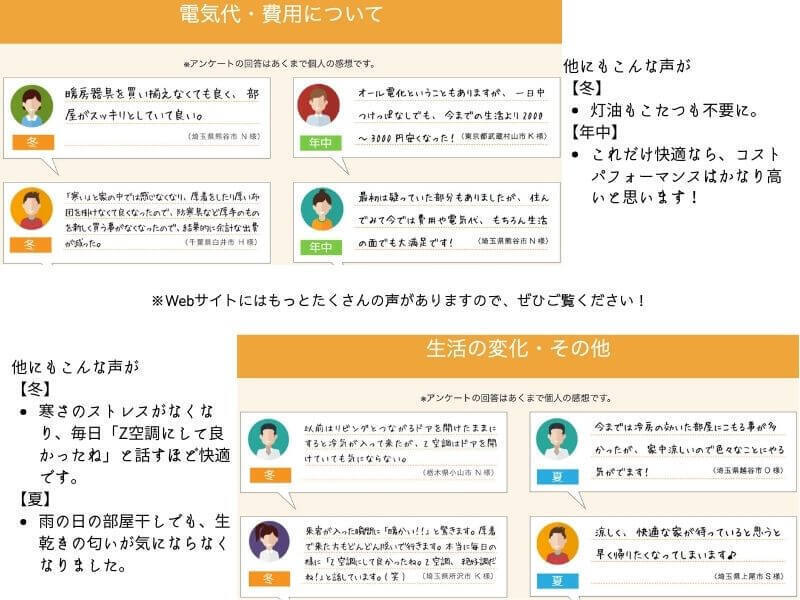以下はZ空調を自宅に導入したお客様の声をまとめた画像です。