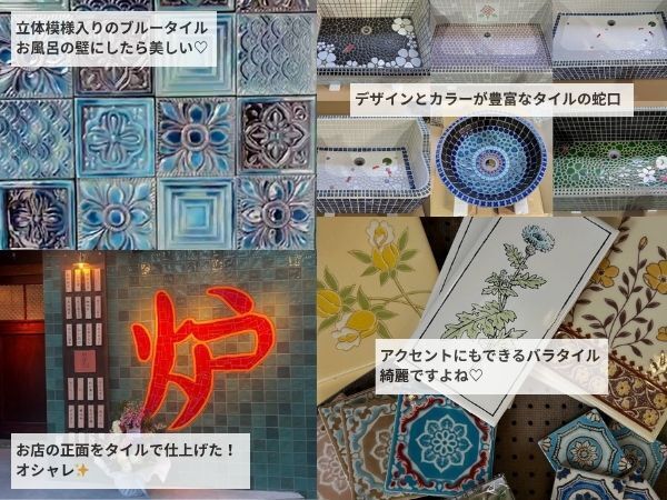 タイルは素材だけでなく、形やカラーバリエーションも多彩なので、好みに合わせてカスタマイズできます。