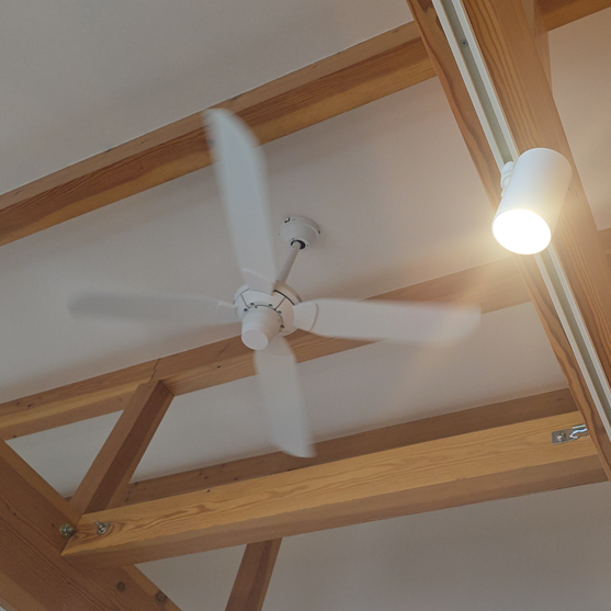 [静かに空間を整えるシーリングファン]